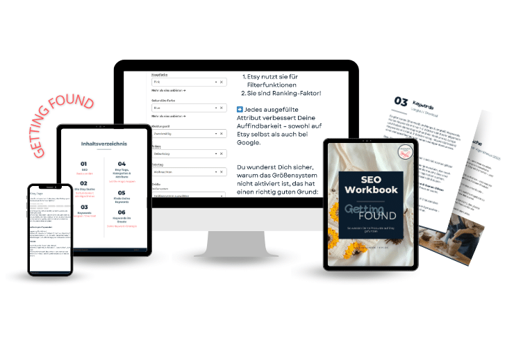 - Ein SEO-Workbook speziell für Etsy-Verkäufer, die genug haben von Sichtbarkeitsproblemen, fehlenden Klicks und Rätselraten.