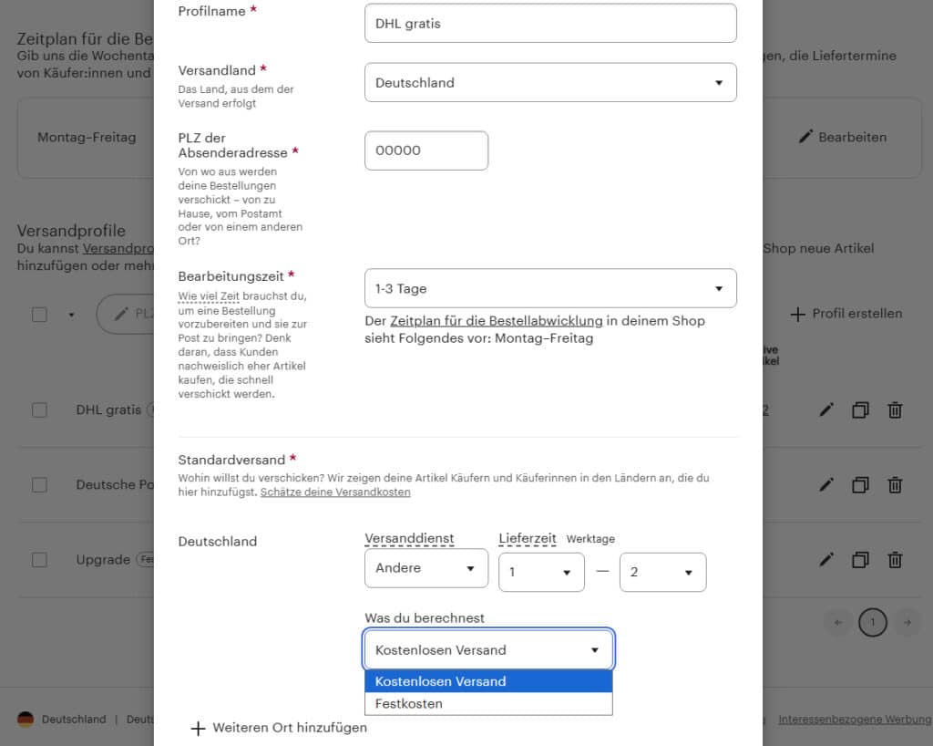 Etsy Versandkosten einstellen – so geht’s technisch